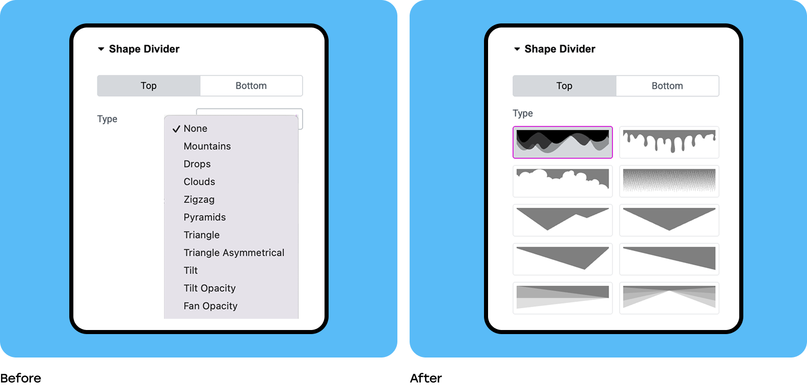 Users gained a visual choice, allowing them to see all available presets from the start and quickly understand the clear potential of the widget capabilities.