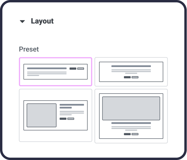 Any presets added to existing widgets needed to ensure all previous user-created layouts were not compromised. This meant keeping all existing granular controls available, even if the new preset dictated the layout.